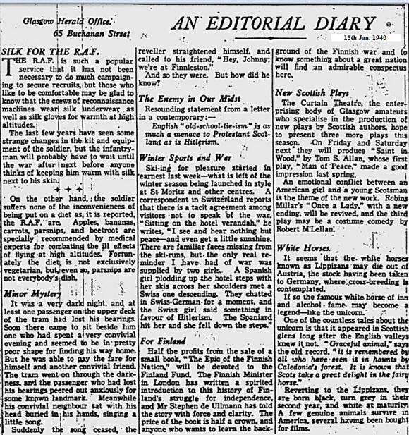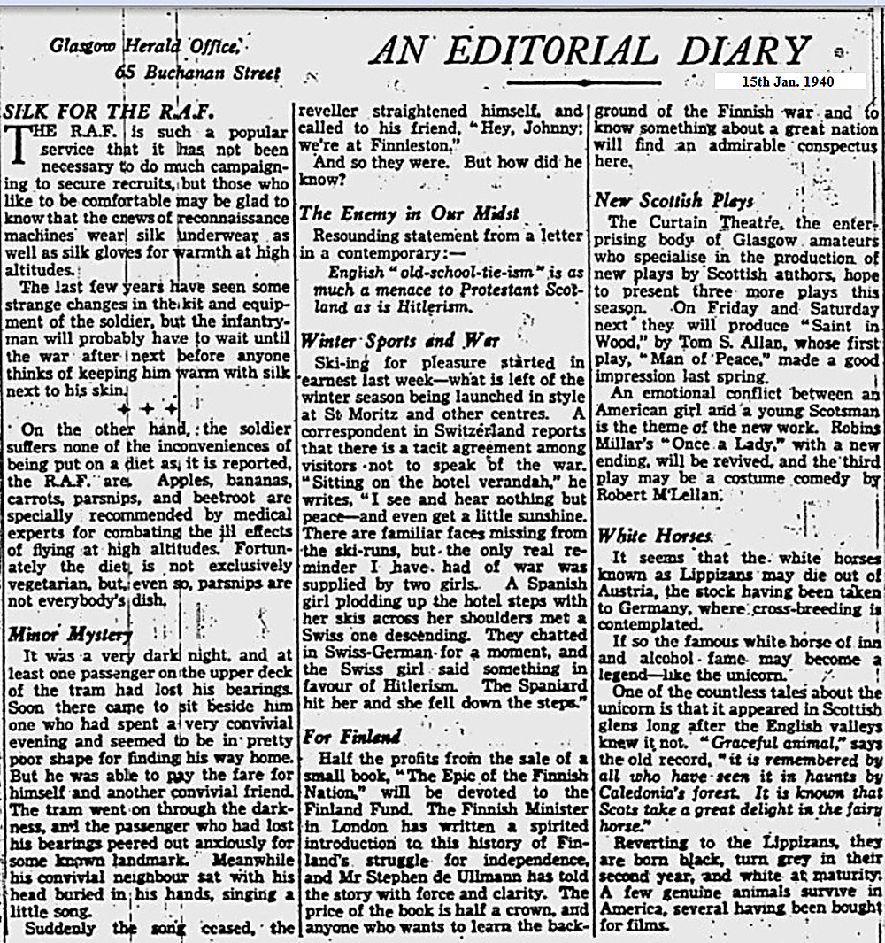 1940, Jan Editorial Diary during WW2 - 15th to 20th January 1940