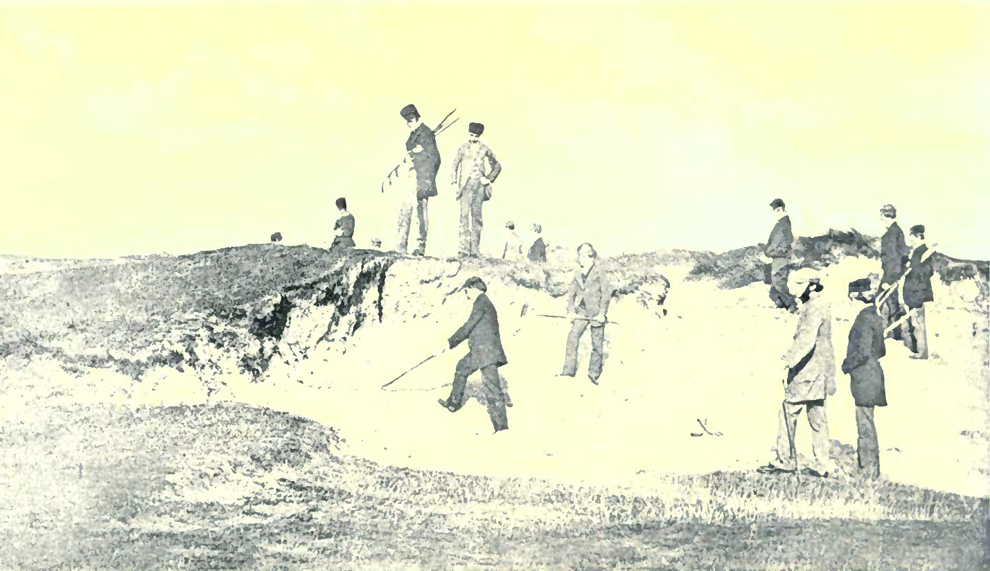 The Minutes of the meeting of the Royal and Ancient Club for September 1863 state that Alexander Herd had resigned the custody of the links, and the Committee accordingly were authorised to appoint a custodian at a salary considerably larger than that hitherto given. Thereupon Major Boothby gave notice of a motion that a professional golfer should be employed as a servant of the Club, and that the entire charge of the course should be entrusted to him. Subsequently a large majority were found to be in favour of the proposal, as a result of which Tom Morris was introduced from Prestwick. His duties were explained to him: to keep the putting-greens in good order, to repair when necessary, and to make the holes. For heavy work, carting, etc., he was to be, allowed assistance at the rate of one man's labour for two days in the week, and it was understood that he was to work under the Green Committee. Emblems of office were then handed over to him, to wit, a barrow, a spade and a shovel in prophetic instinct, belike that "saund" and even "mair saund, Honey man" would be in future ages the watchword of the newly-appointed Chief of the Links. The sum of £50 per annum was voted by the Union Club for payment of the custodian's salary, and £20 for the upkeep of the links.