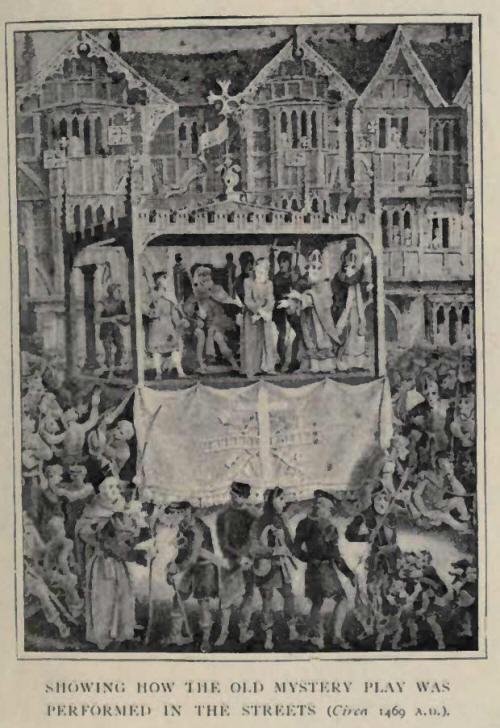 Exhibitions of the Mysteries were sometimes given at the churches also.