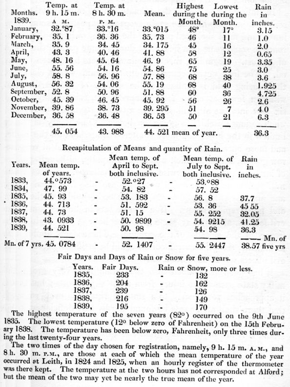 years, of a register of the thermometer, kept at Alford, Aberdeenshire;