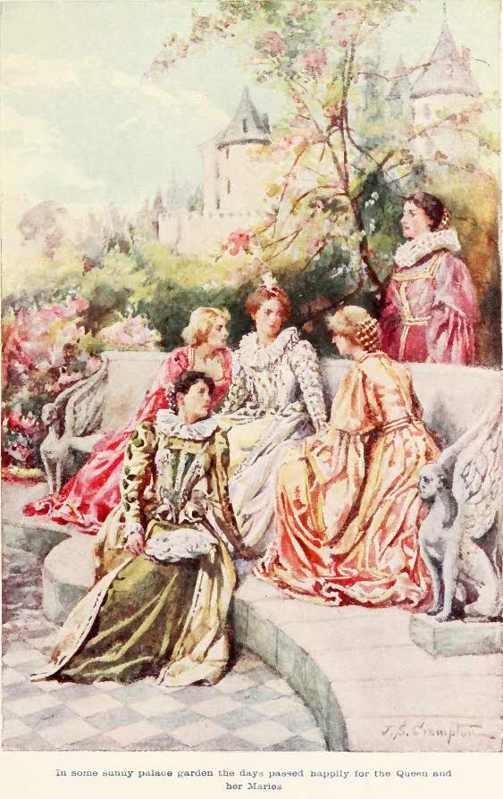 Mary was taught to sing, and to play, and to dance, to ride and to hunt. She was also taught to sew and to embroider, and she could speak and write Latin and several other languages. So, sometimes at the gay French court, sometimes in some sunny palace garden, the days passed peacefully and happily for the Queen and her four Manes. Then, when the Queen was fifteen, she was married to the Dauphin, the eldest son of the King of France.