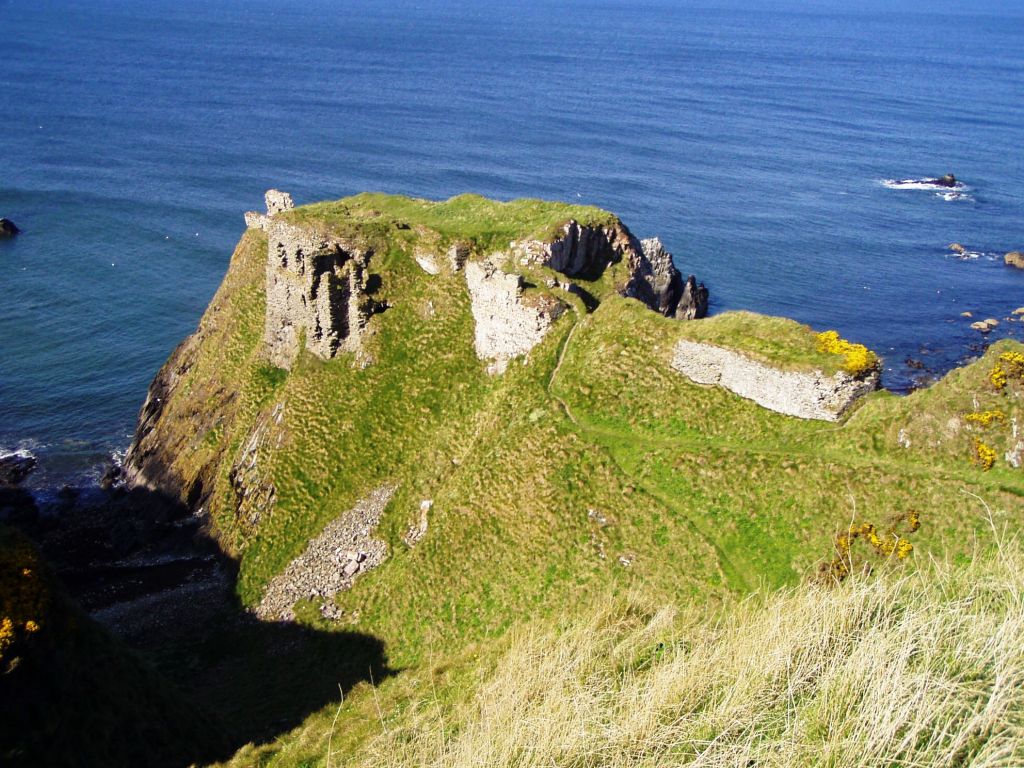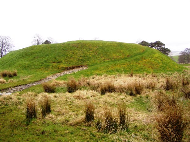 A fine 13th-century castle of enclosure with a curtain wall, first owned by the Comyns.