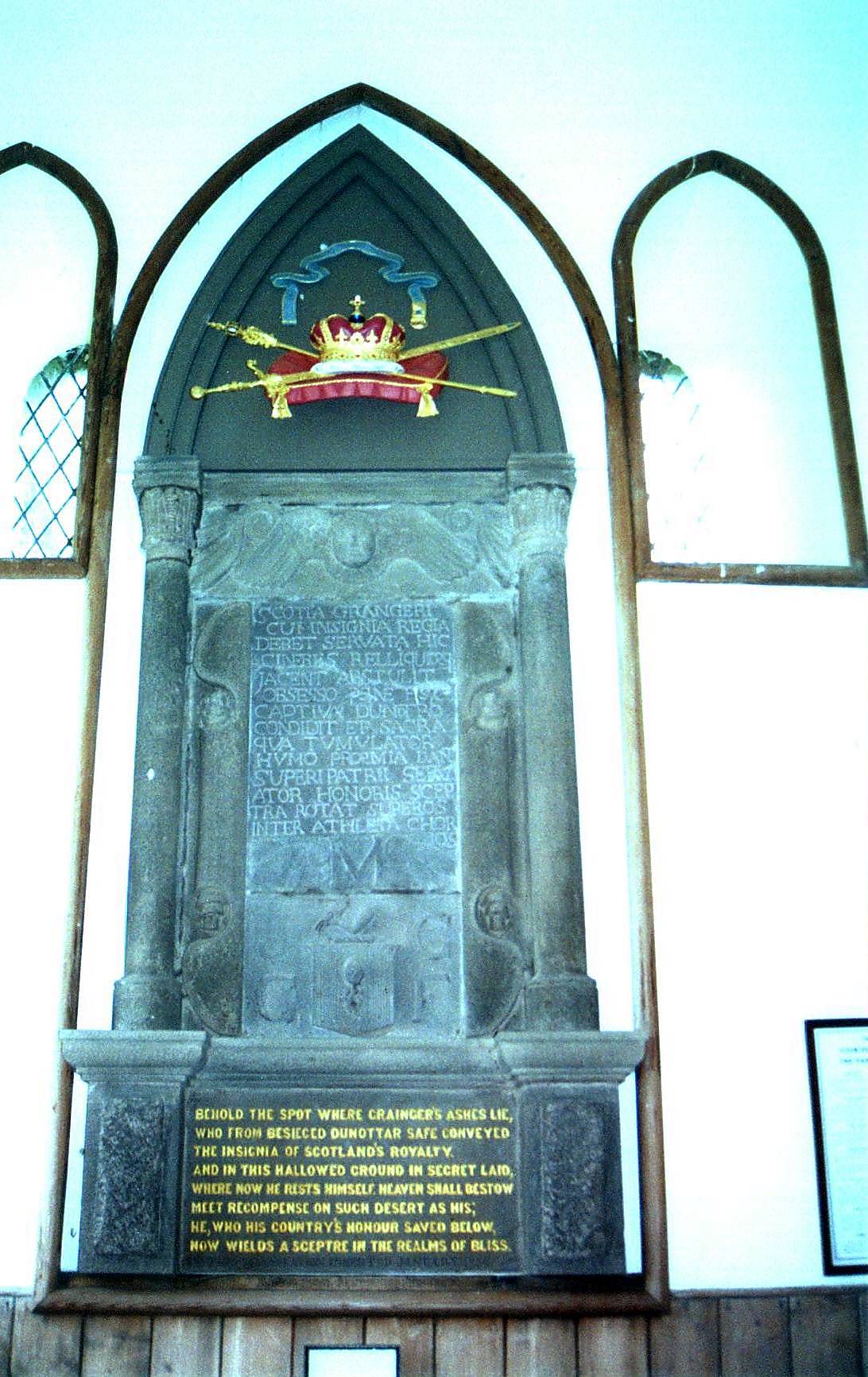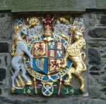 The Stuart Royal Coat of Arms dated 1634. Adjacent to the coat of arms is a