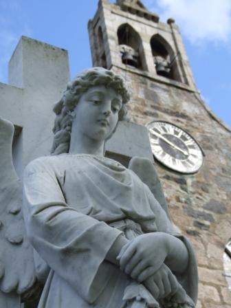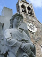 The present church dates from 1808AD, however the first St Peter's church was referrred to as far back as 1178AD. There are two bells in the bellcote one dated 1609 and the other 1809. On the rear wall of the church are five ancient stones: 1 The central stone is thought to have once been the shaft of a Celtic cross dating from 900AD to 1400AD. 2 The top centre class 1 Pictish stone dating from between 6th and 8th century is known as the 'Rothiebrisbane Stone' which has an elaborate horse shoe symbol and another symbol of three circles inside a fourth circle. 3 On the left is the Class 1 Pictish 'Baldyquash Stone' which shows an elephant or 'Pictish Beast', mirrors symbols with crescent and 'V-rod' symbol . 4 On the right is an incomplete class 1 Pictish stone known as the 'Kirkyard Stone' it shows a double-disc and an eagle. 5 At the top is a 'Fluer-de-lys crown' which is thought to have been from the 13th century St Marys priory chapel which once stood near here. At the rear of the church is stained glass window depicting a full size 'St Michael' - this was made by American artist 'Louis Comfort Tiffany'. This window was donated to the church by American friends of Percy's father to the memory of 'Percy Forbes-Leith' who died in the 'South African War' in the year 1900. In the window St Michael is poised above a wheel wearing a coat of armour; he is holding a flaming sword in his right hand and the banner of the cross in his left hand. This window is considered 'priceless' because the secret of producing the glass was a Tiffany speciality and has been lost with the death of the last member of the Tiffany family. In the graveyard is the grave of 'Tifty's Annie' who died 19th January 1673 - re the famous ballad 'The mill of Tifty's Annie' which is about Agnes Smith the millers daughter and Andrew Lammie the trumpeter o’ Fyvie. The miller was unhappy about his daughters relationship with the lowly trumpeter and locked her up in the mill. The laird wasn't happy either it is said that he fancied the young lass. The trumpeter reacted to her imprisonment by climbing to the top of Fyvie Castle and blew his horn toward the mill. The trumpeter was sent away abroad, today you can see a small statue of him with his horn on the top of Fyvie Castle. It is said that Annie died of a broken heart. Her original headstone was replaced in 1859 with a 'Maltese Cross', and a small iron railing was erected. At the front of the church is the impressive 'Forbes-Leith' burial area which has armorial panels and a very impressive angel statue. On the outside of the church wall dated 1875 is a small polished pink granite fountain which reads 'Presented by captain A.H. Gordon 1875 John 13 – 14’ There is also a gravestone in the kirkyard which refers to 'Alexander Gray', farmer in 'Mill of Burns' who lived in the 17th / 18th century who died at the age of 86 and it states that he had 32 legitimate children to two wives. (S.Bruce Nov 2007). Stanley Bruce |