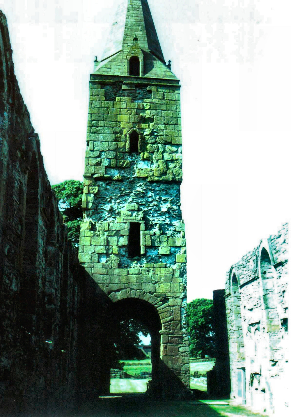 One of the two round towers of Irish style surviving in Scotland, dating from the end