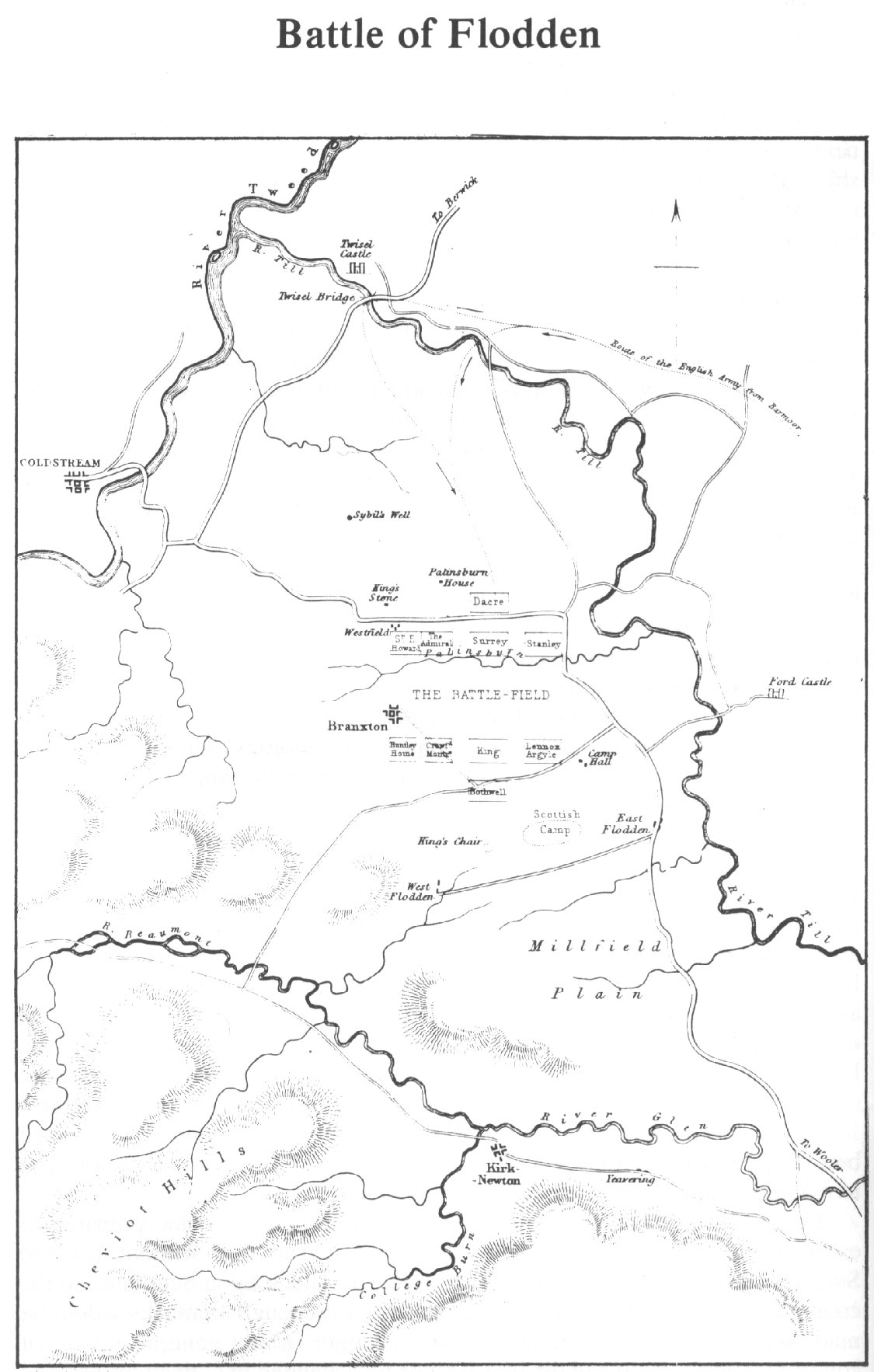 With perhaps the largest Scottish army ever assembled, James crossed the border, captured key English strongholds and awaited the oncoming English army under the wily veteran, Surrey. As the armies came in sight of each other on 9 September 1513, James committed the deadly error of allowing Surrey to place his army between the Scots and their road back to Scotland. His final error was to order the Scots to leave their position upon Flodden Hill and toil over marshland to attack the English. Superior technology again was decisive, not archers this time, but guns, and the English infantry armed with 'bills' - short spears with axe heads on their shafts. With their bills the English broke the Scottish spears and were able to close in upon the tight Scottish ranks. The Scottish right, under Argyle and Lennox broke; the left, under Huntly and Home were victorious, but pursued their beaten adversaries, allowing Surrey to close in upon the king and the Scottish centre. There King James died with an English arrow in his throat and a bill wound on his head. Around him lay twelve Scottish Earls; his young son Alexander, Archbishop of St. Andrews; fifteen lesser lords and clan chiefs, and several thousand of his countrymen. They fought on till darkness fell, and then made for the Tweed and home. The road to Edinburgh lay open, and the city authorities learned of the disaster from Randolph Murray, captain of the Town Guard who had gone to Flodden and alone had survived.