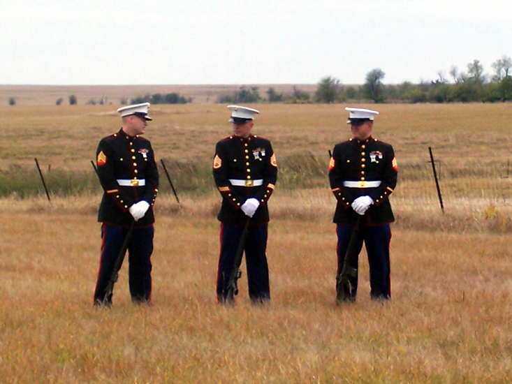 Three of the Marines standing at ease, look closely to see the rifles in