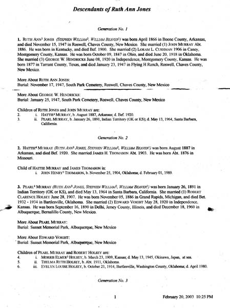 1. Ruth Ann Jones (father, William Stephens, grandfather, William Beaver