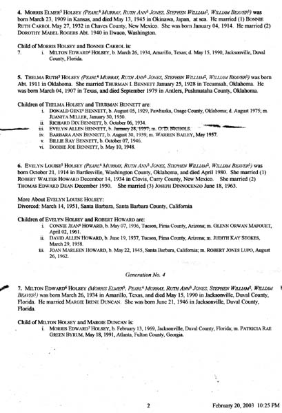 4. Morris Elmer Holsey (Pearl Murray, Ruth Ann Jones, William Stephens,