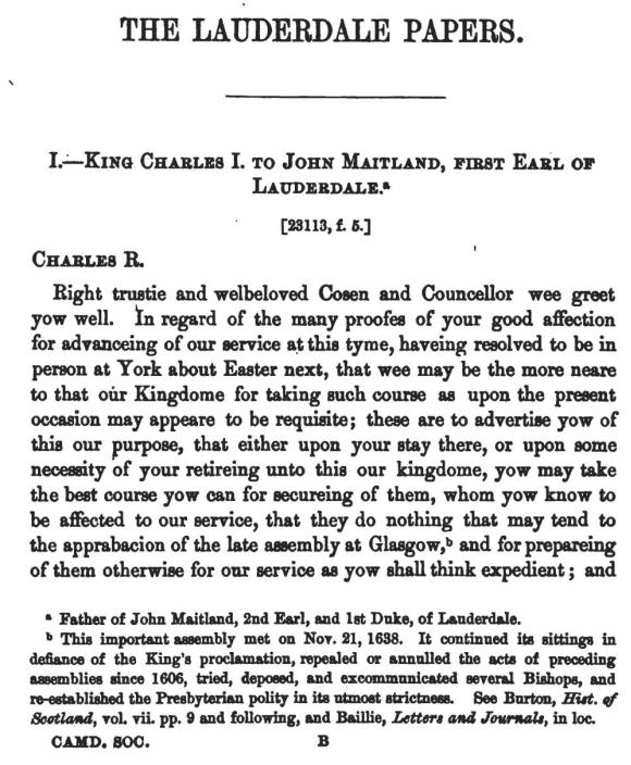 account from Charles Maitland, Lauderdale’s brother, will be found