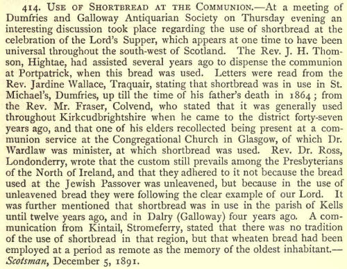 Use of Shortbread at the Communion