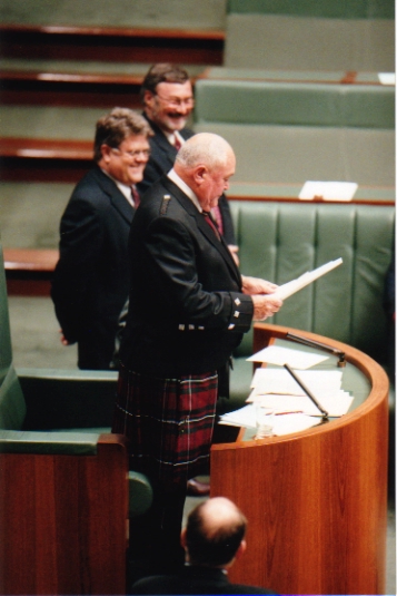 Deputy Speaker of the Australian Government's House of Representatives, addressing a sitting of Parliament in his kilt!   A first in Australian history.