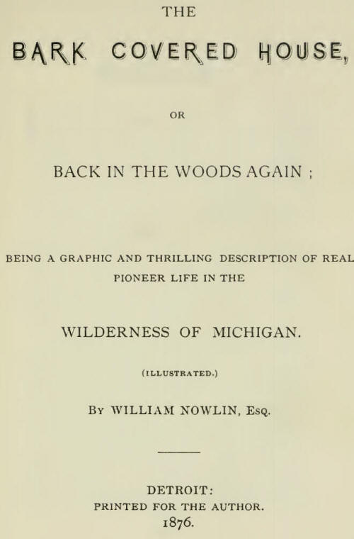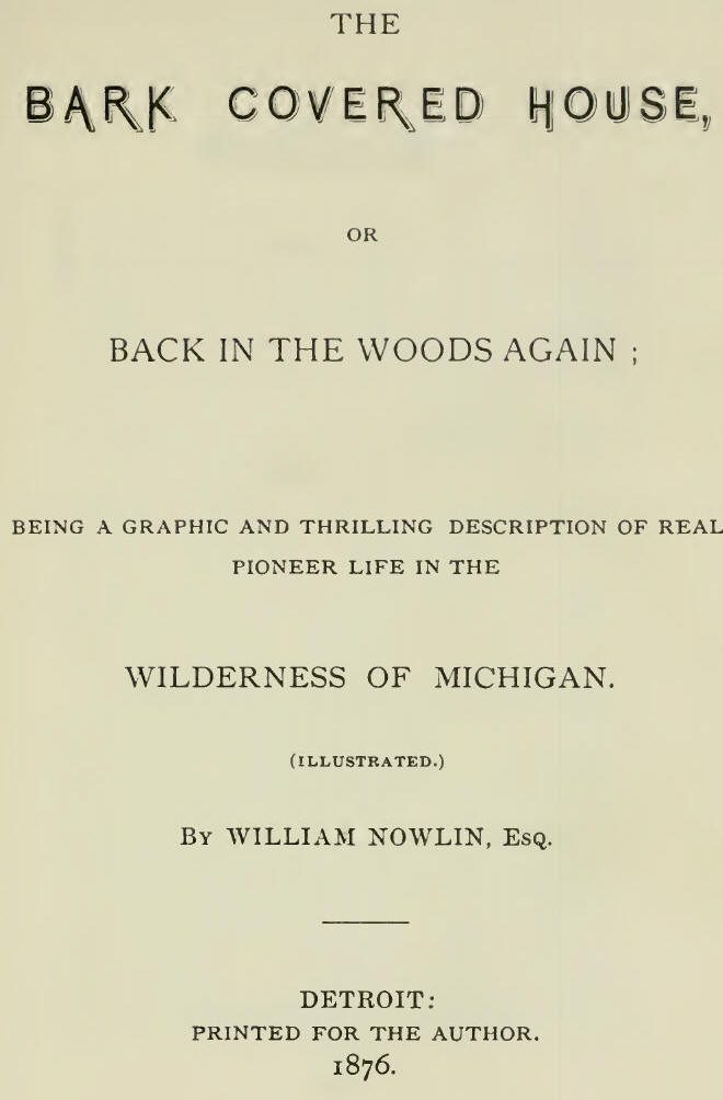 obtained, of a Michigan pioneer narrative entitled The Bark Covered