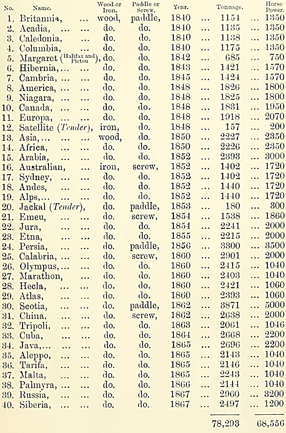 INCLUDING THE STEAM SHIPS OF THE CUNARD SERVICE SINCE ITS ORIGIN IN 1840
