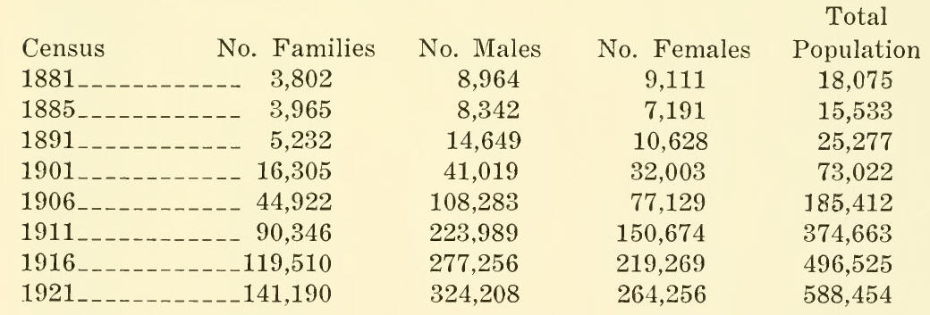 in 1906, to 385,000 in 1911, to 496,000 in 1916, and to 588,454 in 1921.