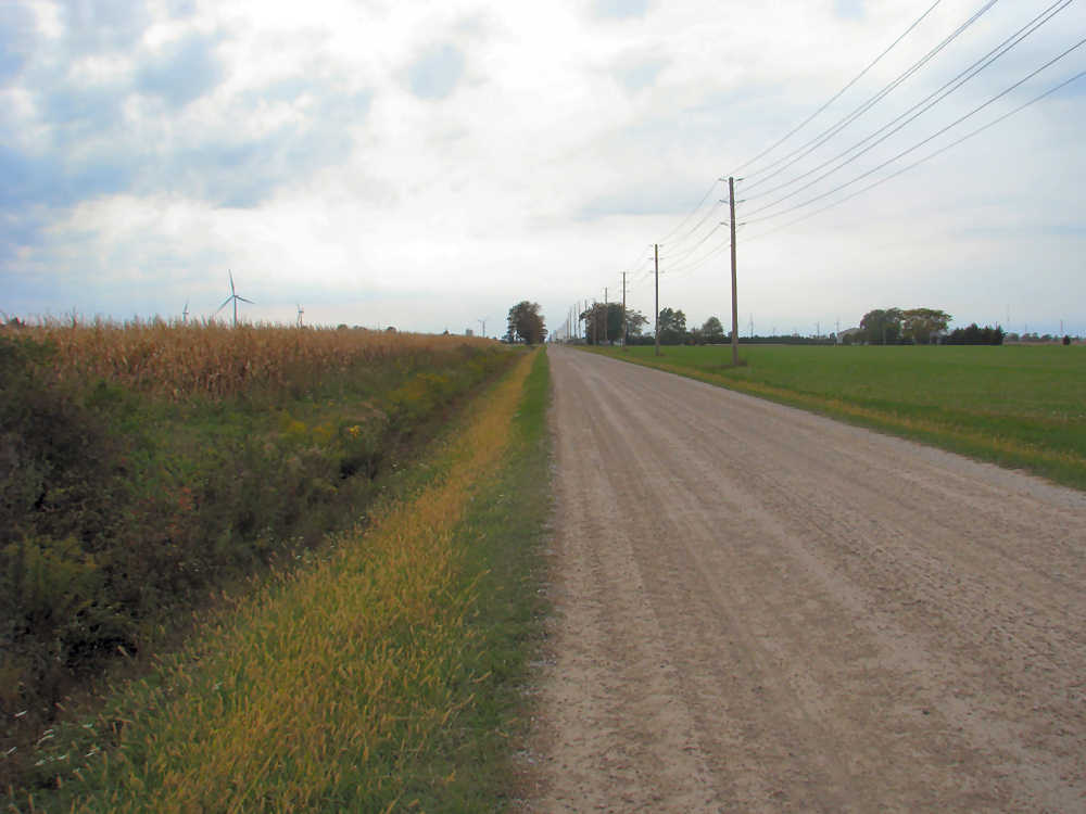 of lake Erie at the south and the road along the river Thames at the