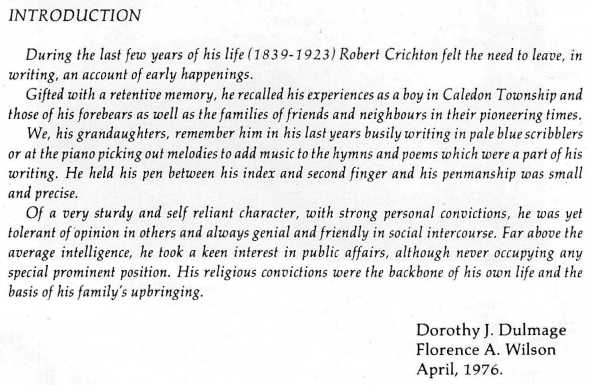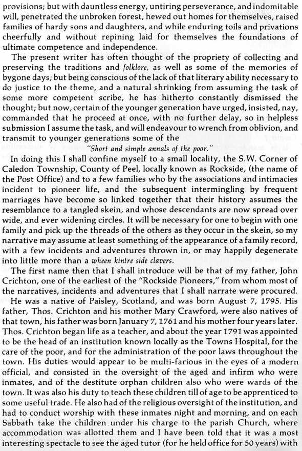 Robert Chrichton's Rockside pioneer, of his memories without which