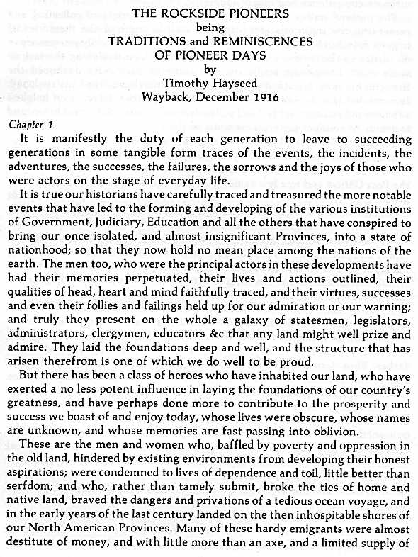 of a book, the Rockside Pioneers, which so eloquently relate the