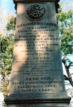The above pictures are the grave and monuments to Alexander MacKenzie in Sarnia, Ontario.