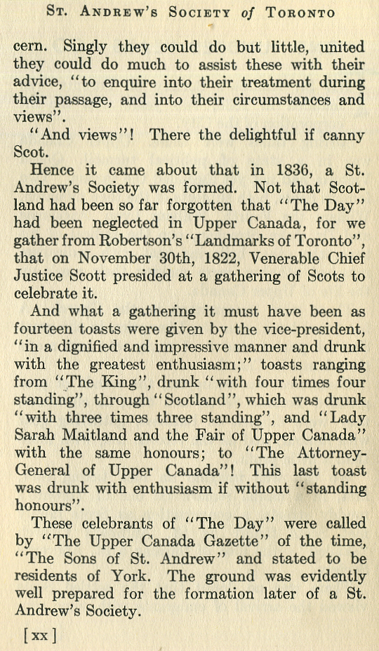 One Hundred Years History St. Andrew's Society of Toronto