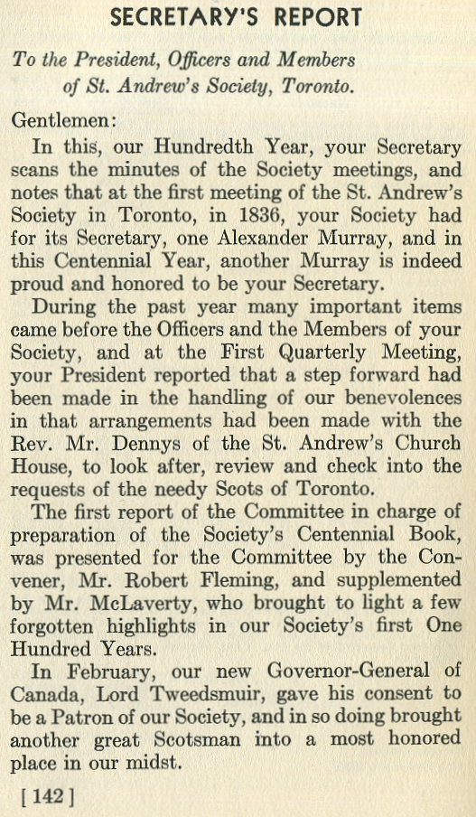 One Hundred Years History St. Andrew's Society of Toronto