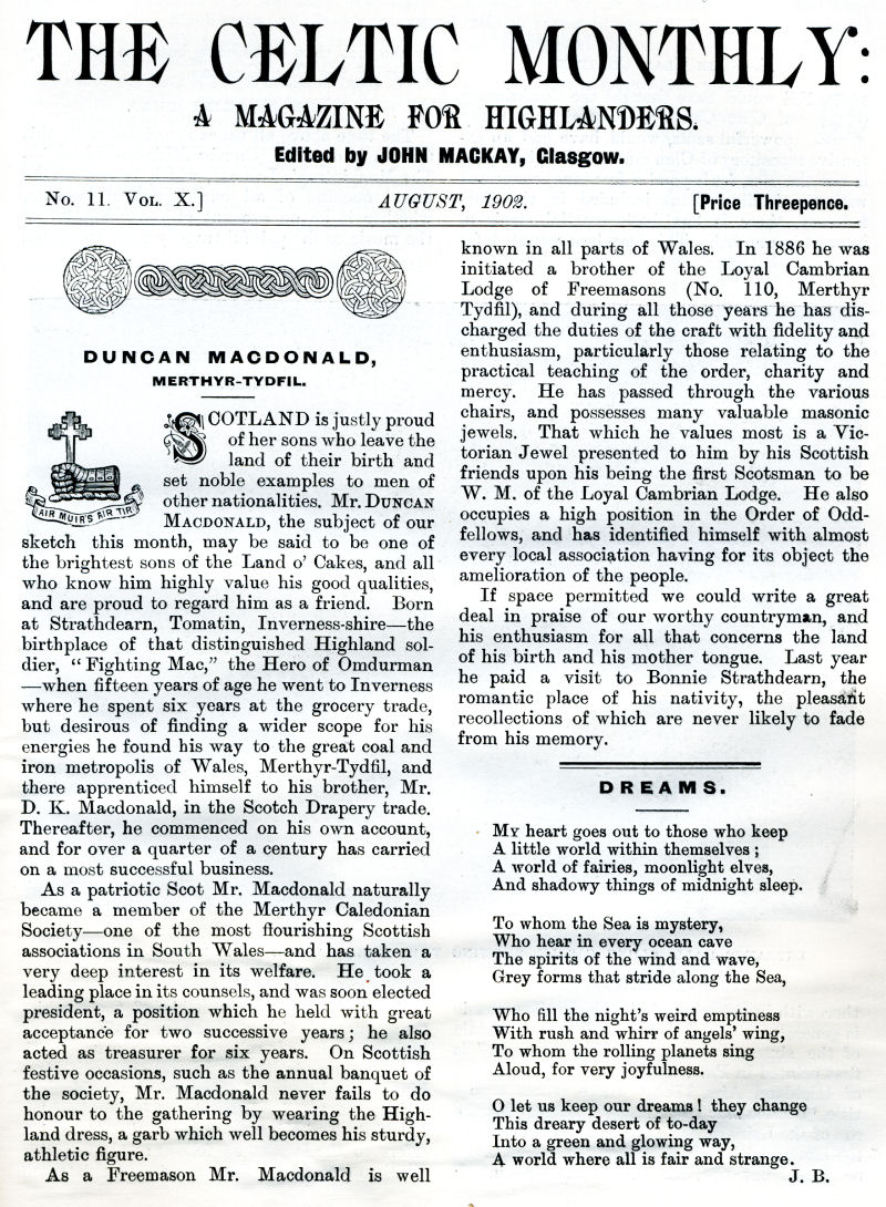 Duncan MacDonald, Merthyr-Tydfil, Dreams, The Martial Music of the