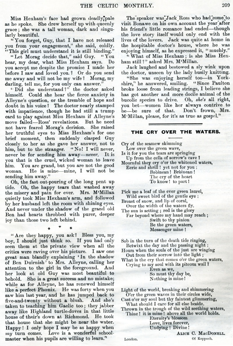 Relation to National Music and Poetr, In a Rosh-Shire Garden, A Gaelic