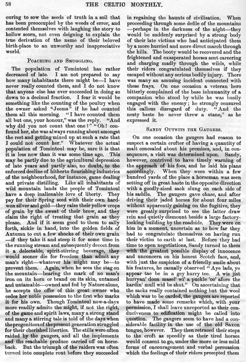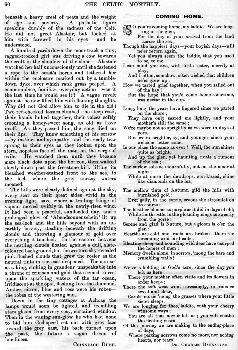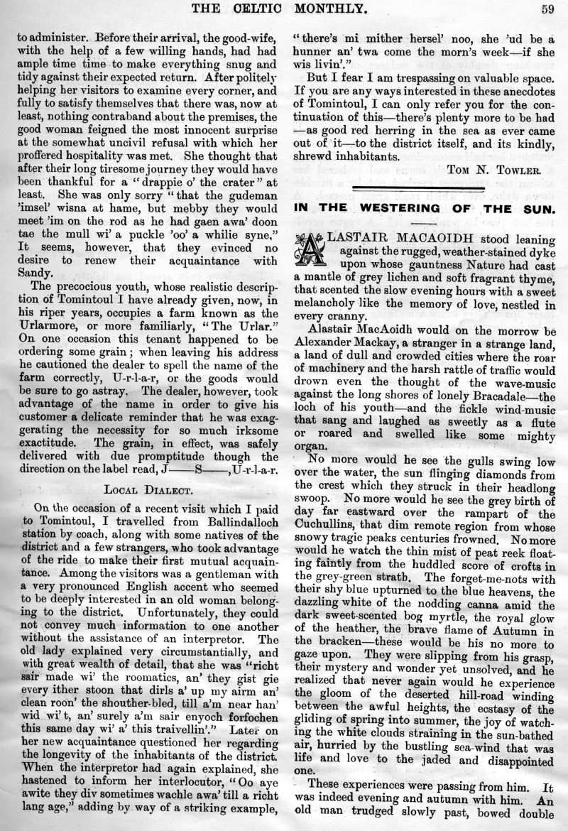 America, About Tomintoul, In the Westering of the Sun, Coming Home.