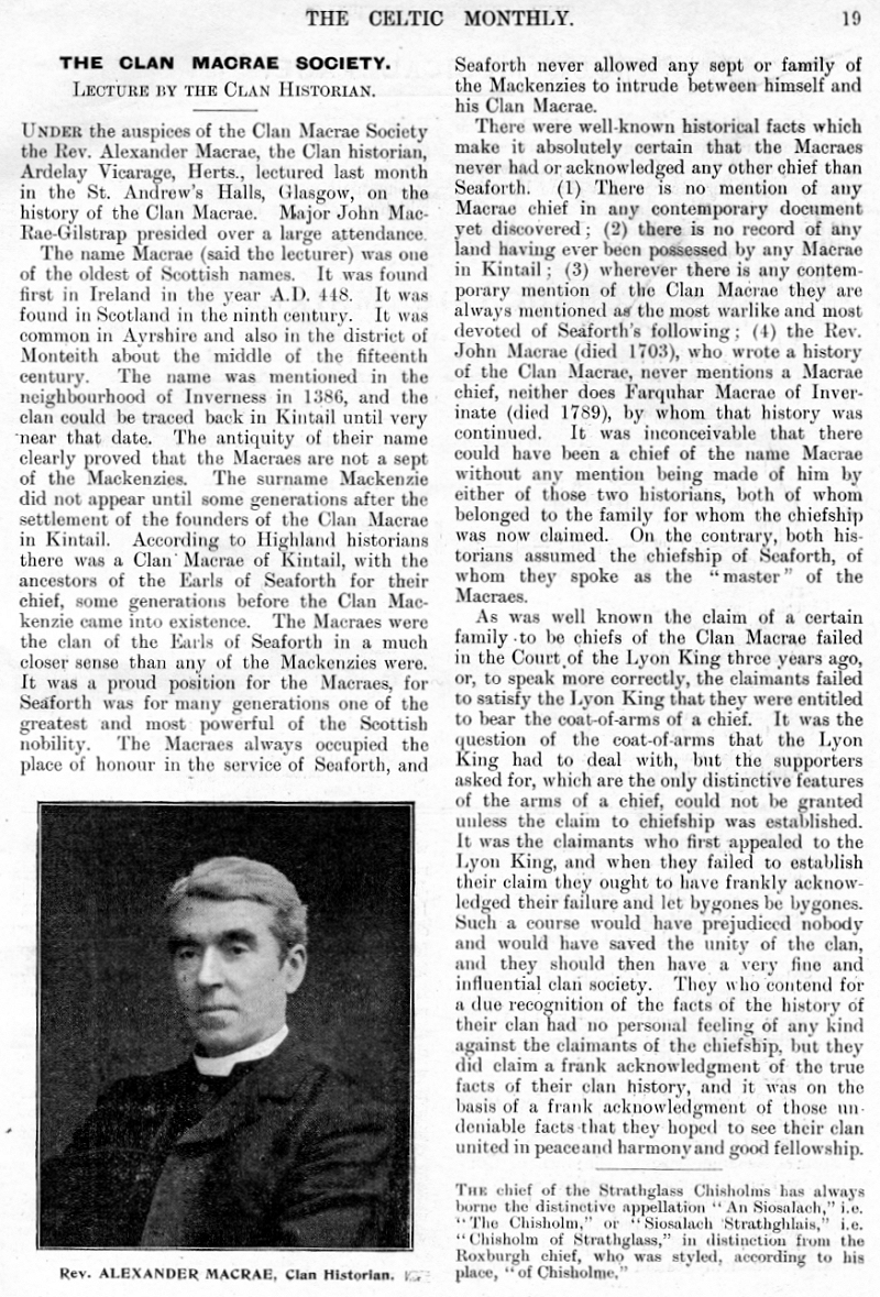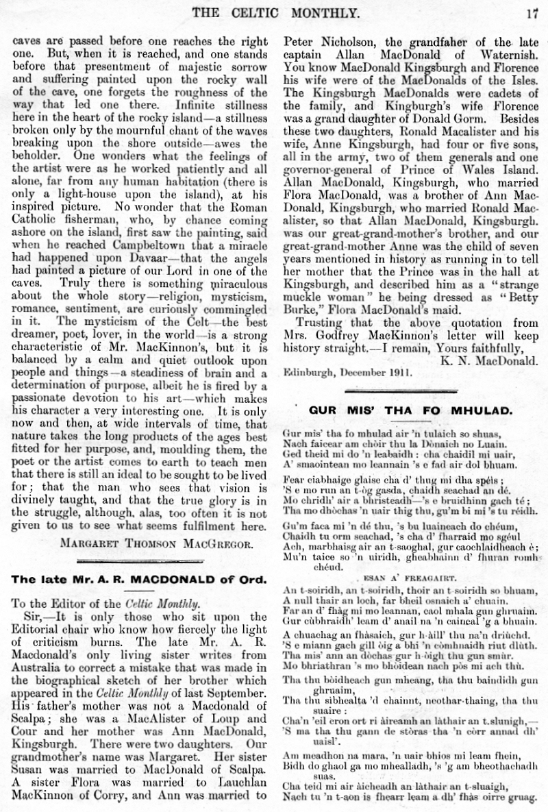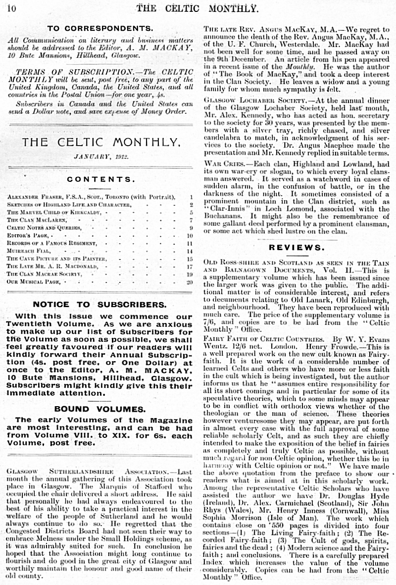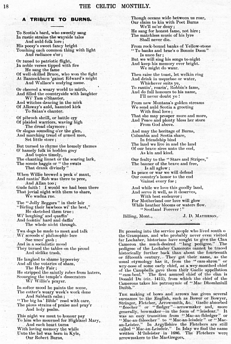 The Late Mr. A MacDonald of Ord, A Tribute to Burns, The Clan MacRae