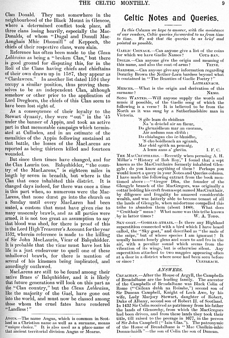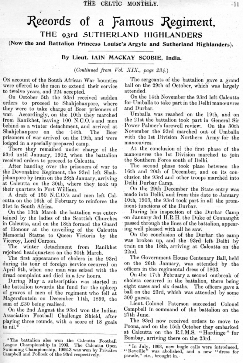 Celtic Notes and Queries, Records of a Famous Regiment - The 93d