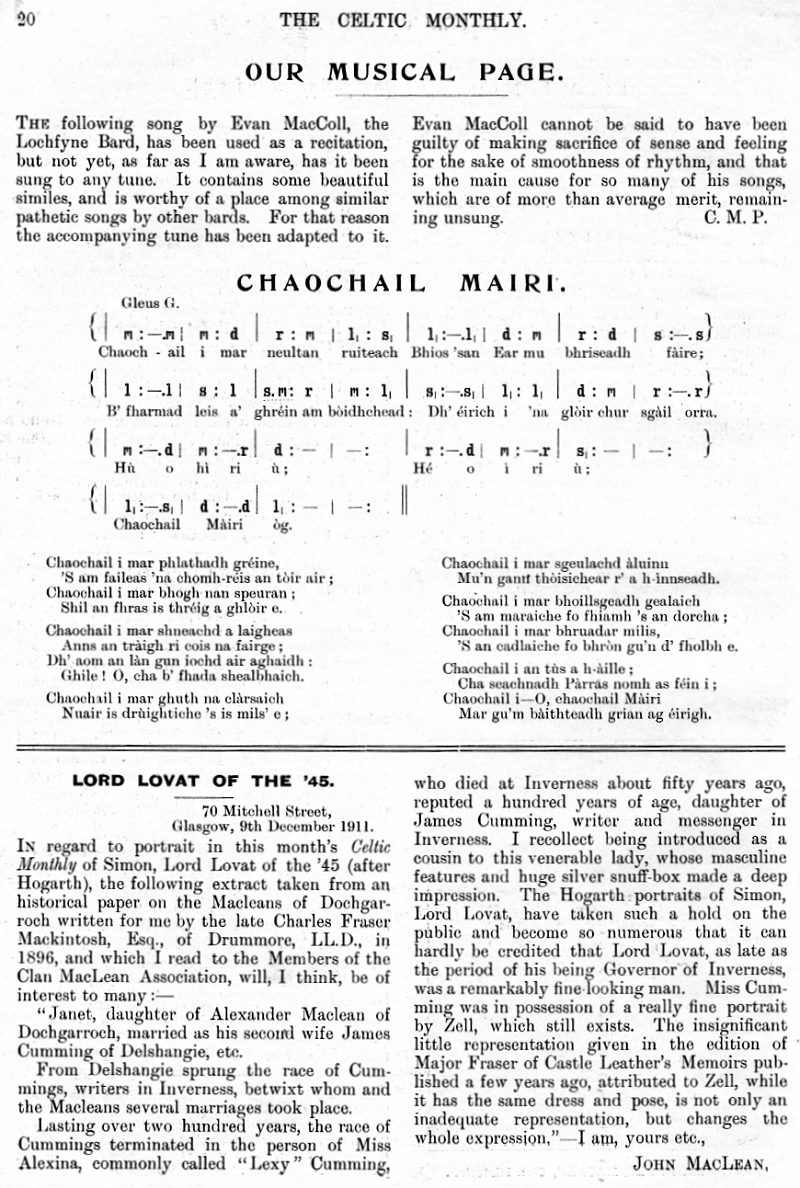 Societyy, Our Musical Page, Lord Lovat of the '45.