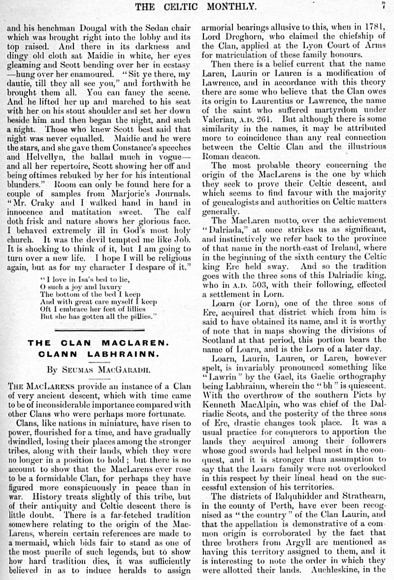 Character, The Marvel Child of Kircauldy - L. MacBean, The Clan MacLaren,