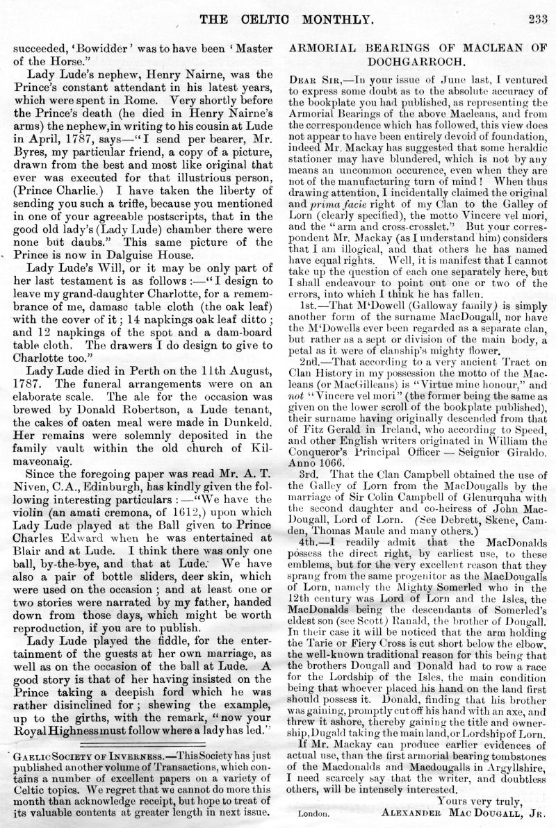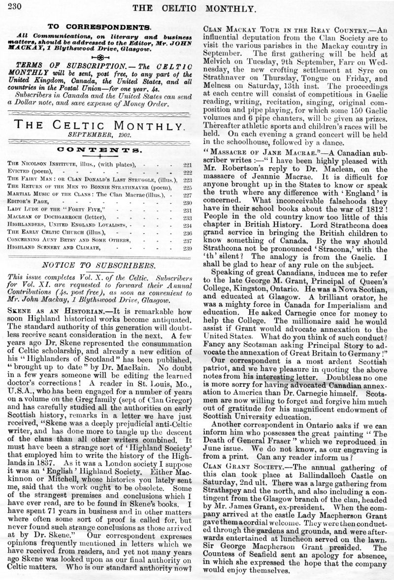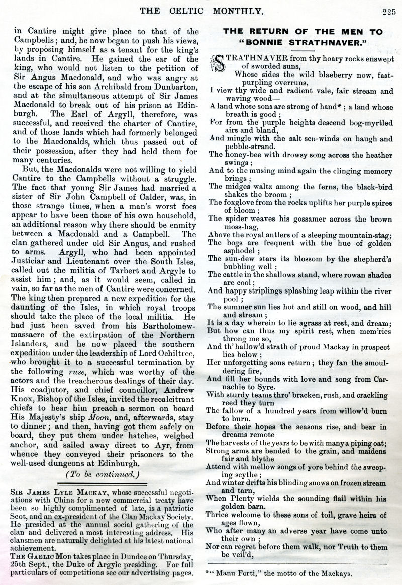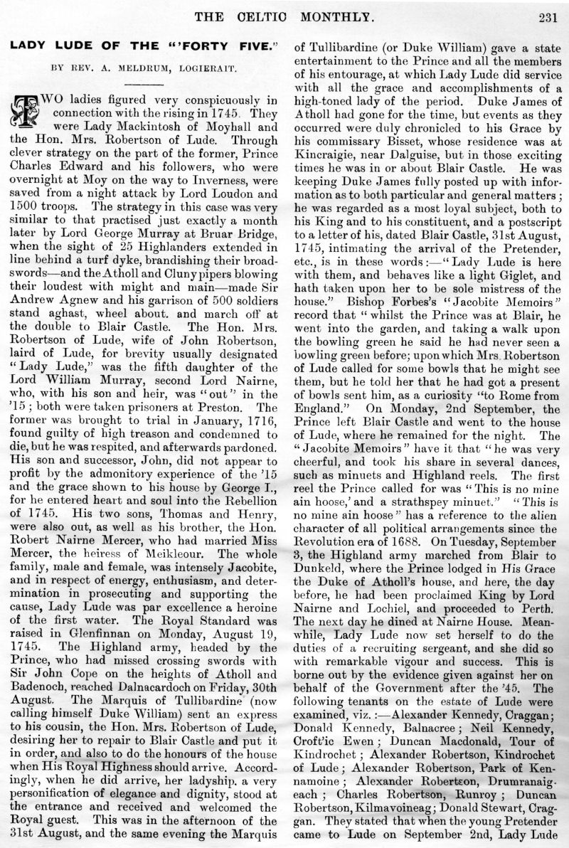 Strathnaver: The Return, Skene as an Historian, Lady Lude of the "Forty
