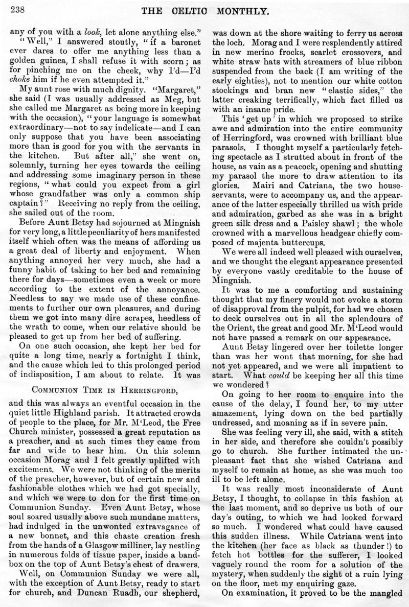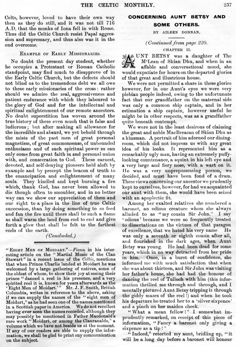 England Loyalists, The Early Celtic Church, Concerning Aunt Betsy and