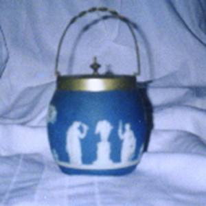 Text Box: §The Wedgewood Jasper biscuit barrel from Charlotte McIntosh’s “Auntie Chat” (Charlotte Beat Crofts) who owned a pottery dealership in partnership with their grandmother, Jessie Hacket Beat McIntosh, in Dundee and gave her namesake this as her wedding present.  This was given to Charlotte’s granddaughter, Charlotte Alvoet Bleh on her wedding day to another sailor in Dundee.  This will be given to another granddaughter, Charlotte Eden Sample, on her wedding day, and is expected to be passed on to the first descendant of Charlotte McIntosh Thomas named Charlotte in the next and succeeding generations of McIntosh-Thomas daughters. §