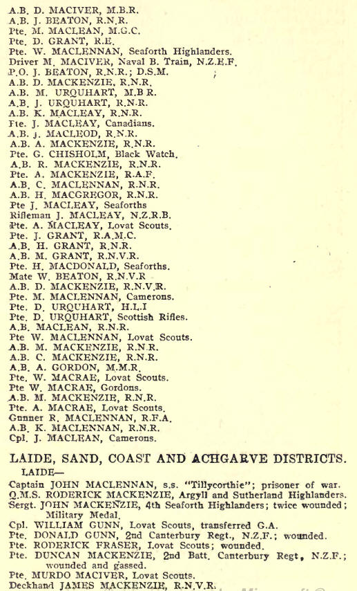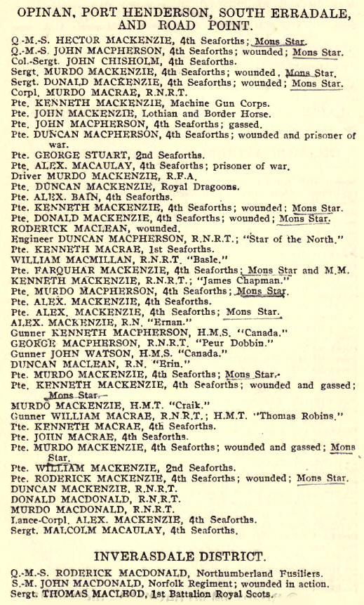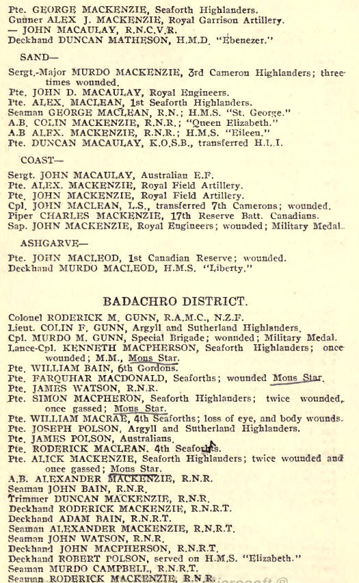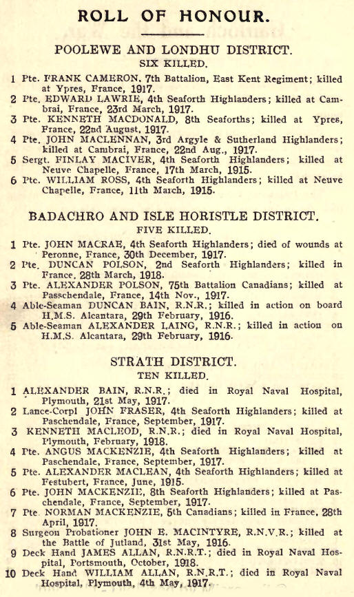 Contin, Urquhart, Strath, Bracadale, Portree, Arisaig, Harris, Muckairn