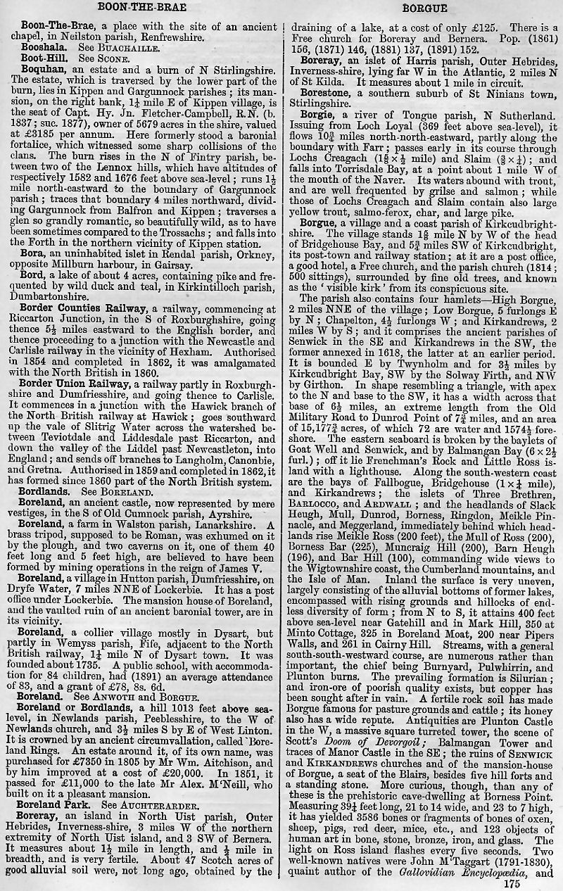 Boon-The-Brae, Booshala, Boot-Hill, Boquhan, Bora, Bord, Border Counties Railway, Bordlands, Boreland, Boreland or Bordlands, Boreland Park, Boreray, Borestone, Borgie, Borgue