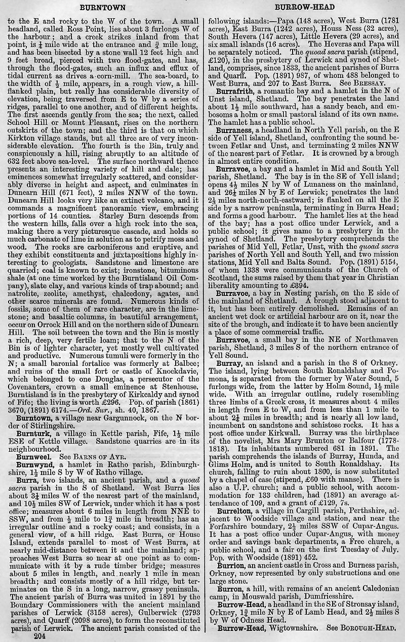Burntown, Burnturk, Burnweel, Burnwynd, Burra, Burrafrith, Burraness, Burravoe, Burray, Burrelton, Burrion, Burron, Burrow-Head