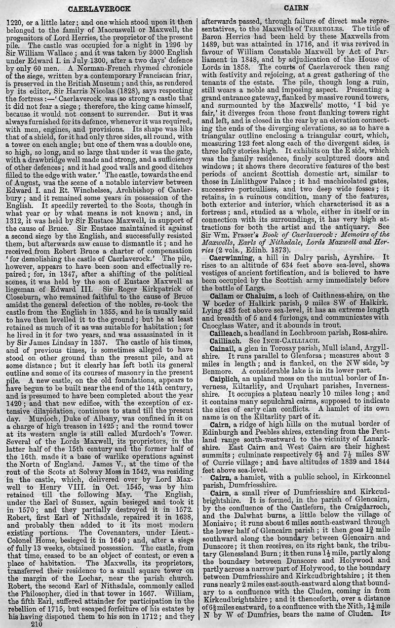Caerwinning, Cailam or Chaluim, Cailleach, Cailliach, Cainail, Caiplich, Cairn