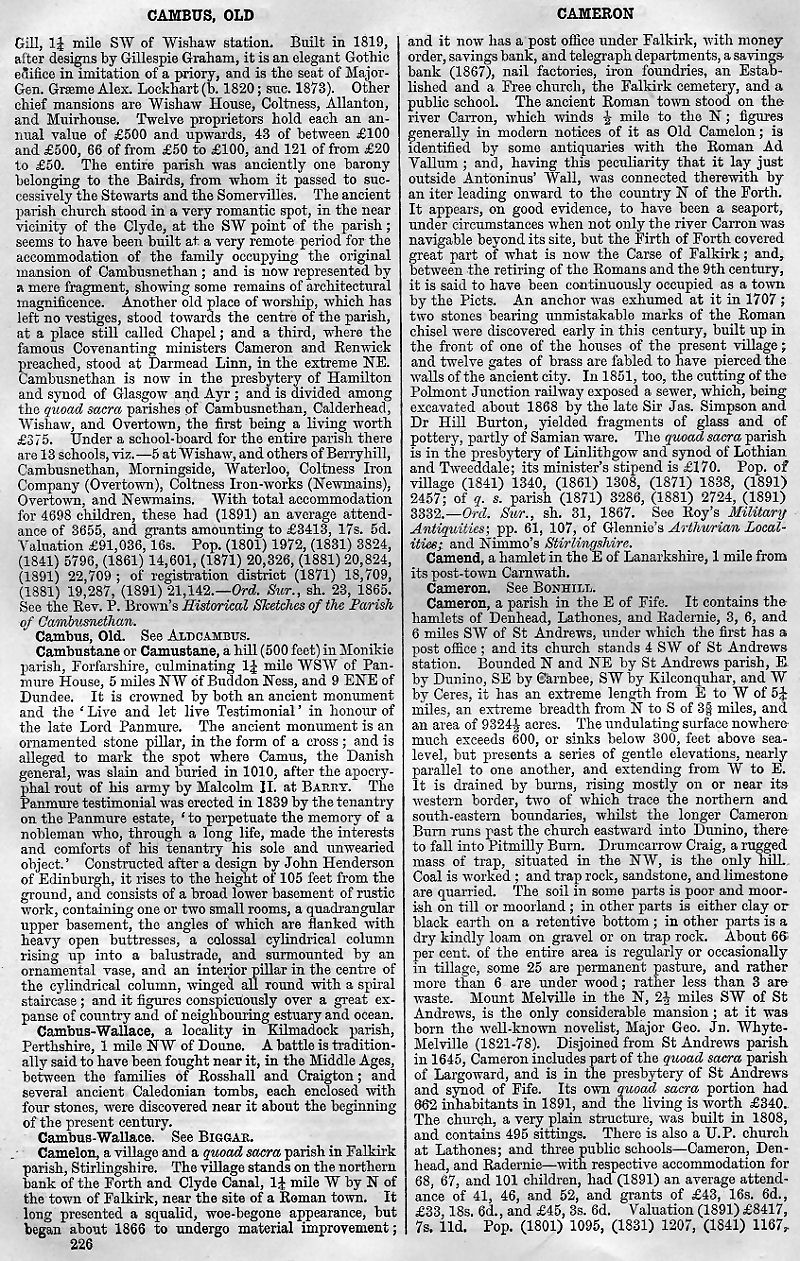 Old Cambus, Cambustane or Camustane, Cambus-Wallace, Camelon, Camend, Cameron