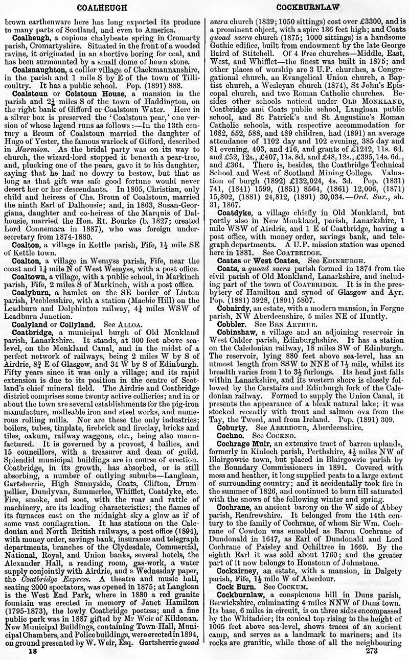 Coatbridge, Coatdyke, Coates or West Coates, Coats, Cobairdy, Cobbler,
