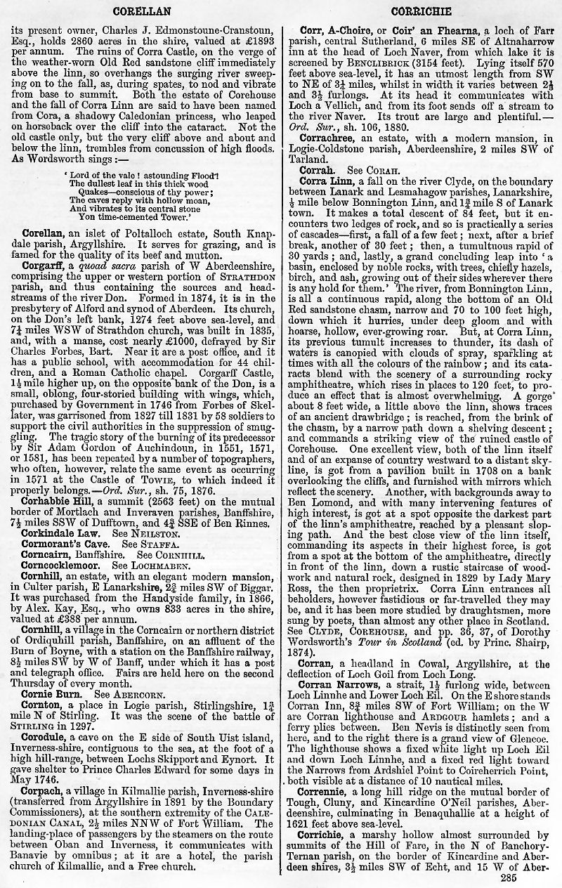 Cornie Burn, Cornton, Corodule, Corpach, A-Choire Corr or Coir' an