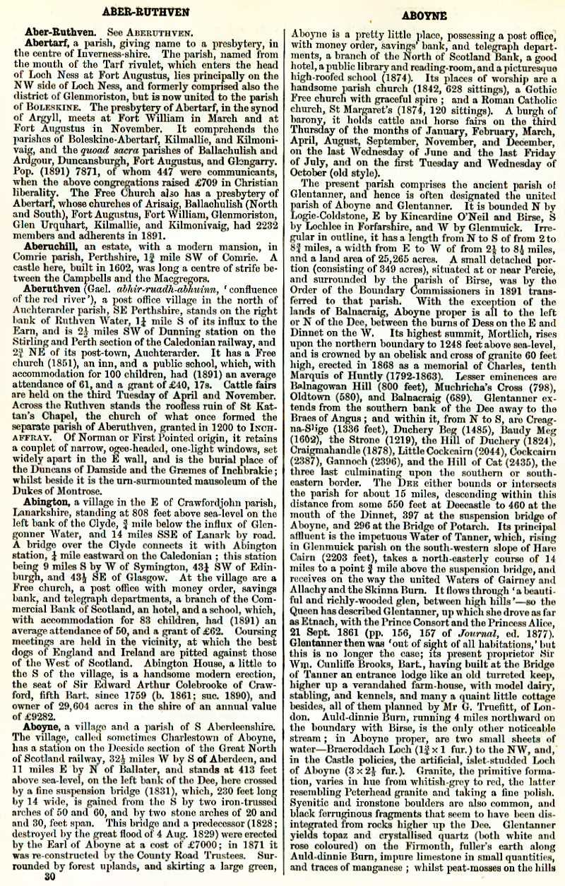 Aber-Ruthven, Abertarf, Aberuchill, Aberuthven, Abington, Aboyne