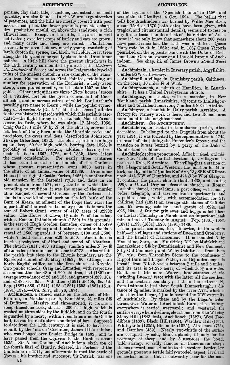 Auchindoun, Auchindrain, Auchingill, Auchingramont, Auchingray, Auchingree, Auchinhew, Auchinhove, Auchinleck