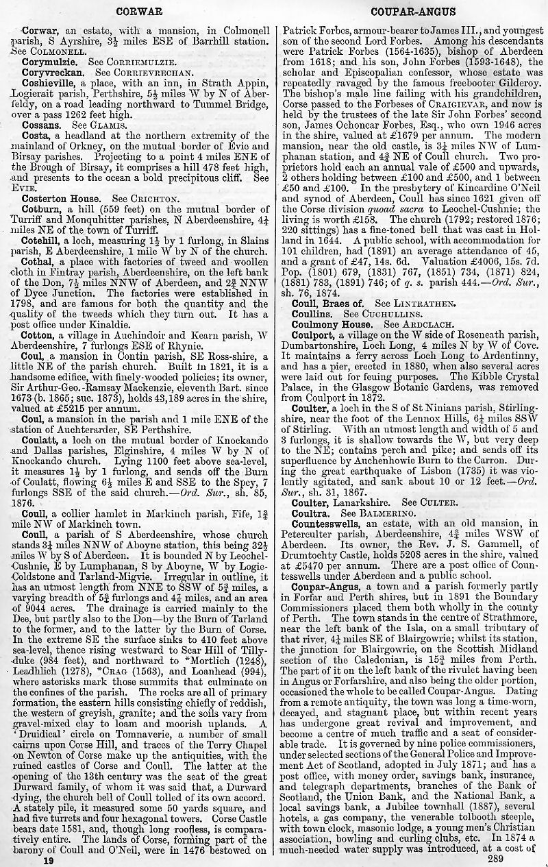 Cotton, Coul, Coulatt, Coull, Braes of Coull, Coullins, Coulmony House,