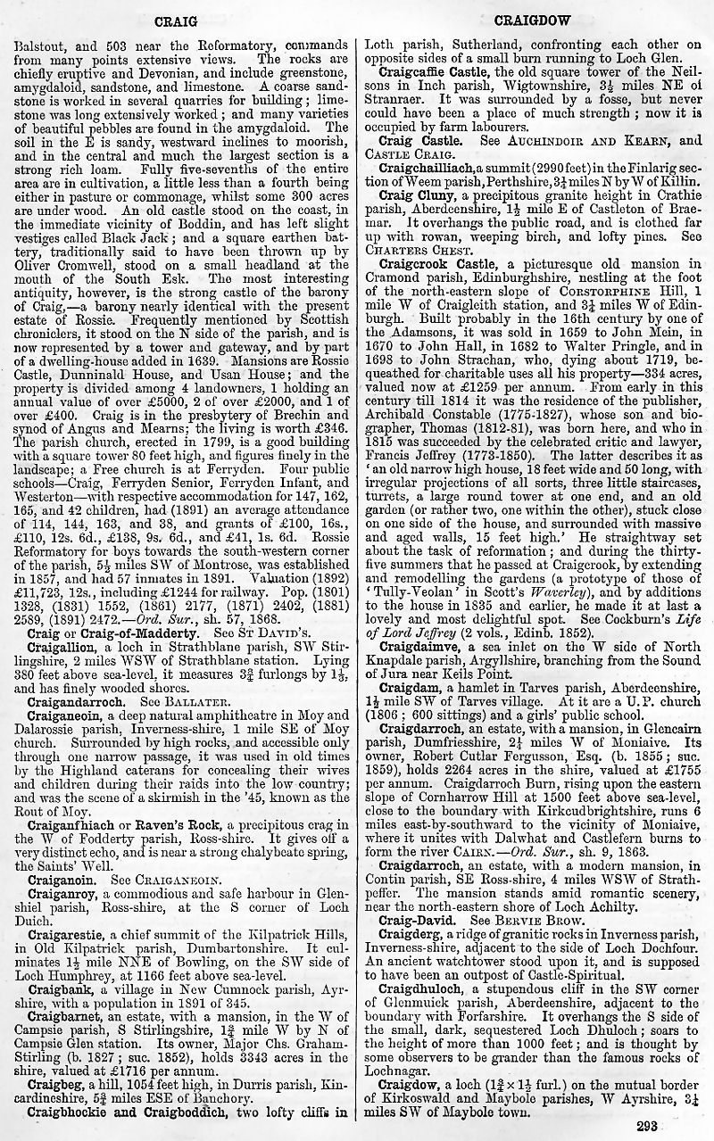 Craigdaimve, Craigdam, Craigdarroch, Craig-David, Craigderg, Craigdhuloch,
