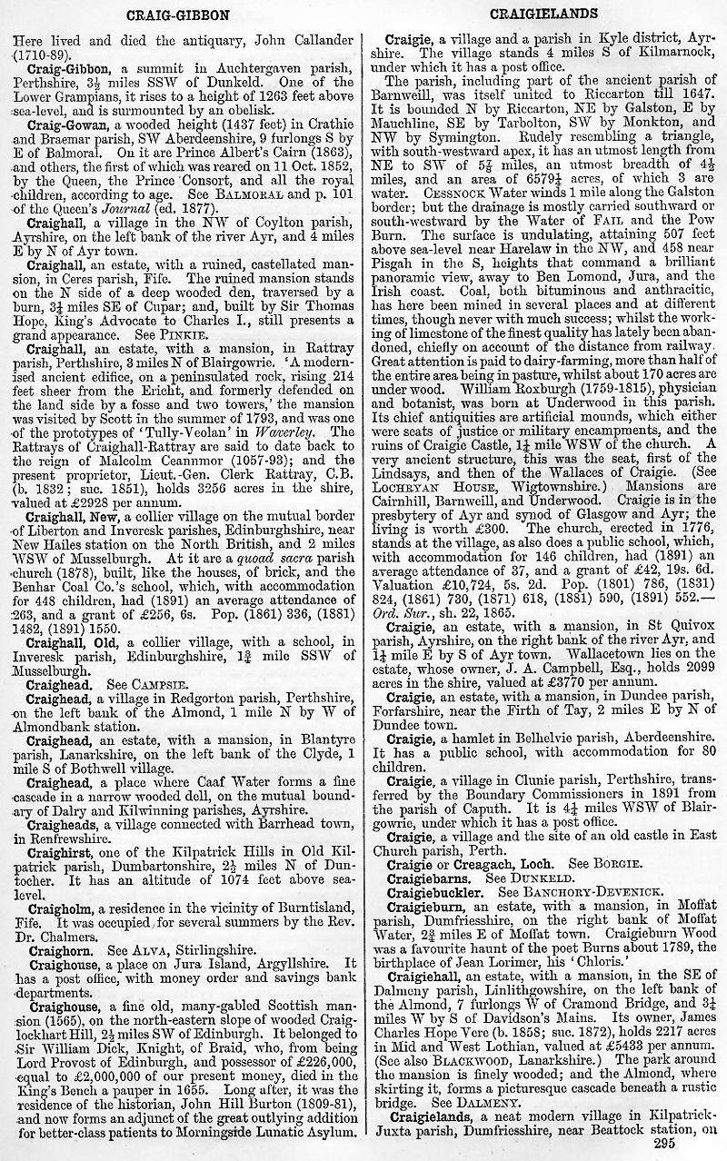 Craighirst, Craigholm, Craighorn, Craighouse, Craigie, Craigie or Creagach