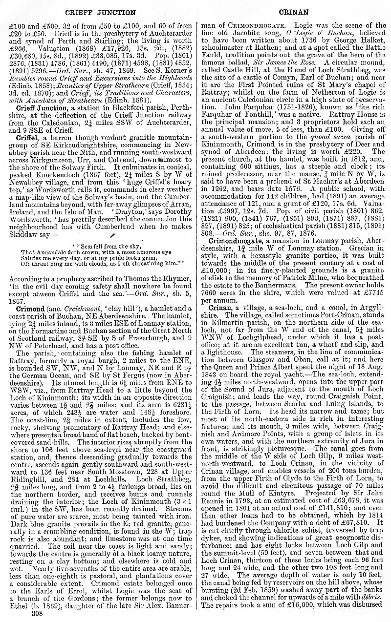 Crieff Junction, Criffel, Crimond, Crimondmogate, Crinan