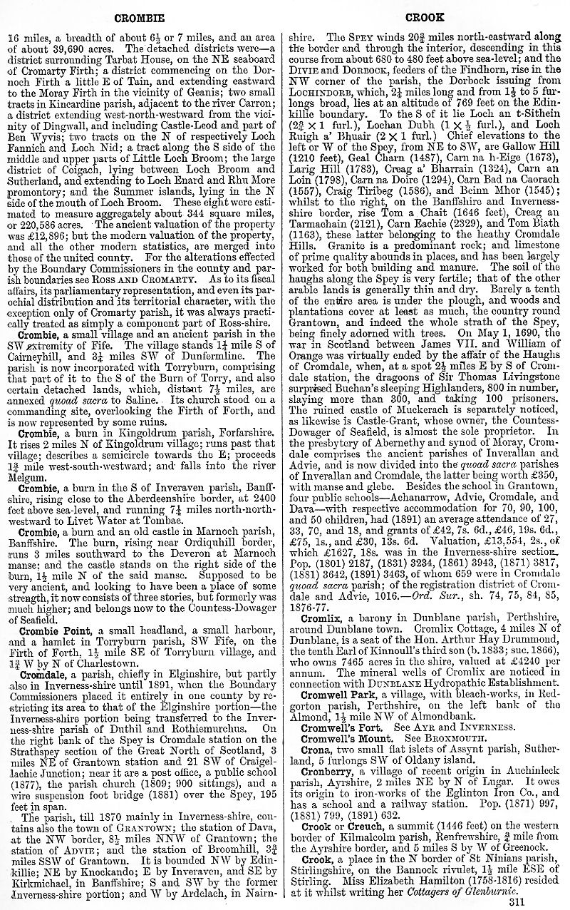 Gazetteer of Scotland Crombie, Crombie Point, Cromdale,