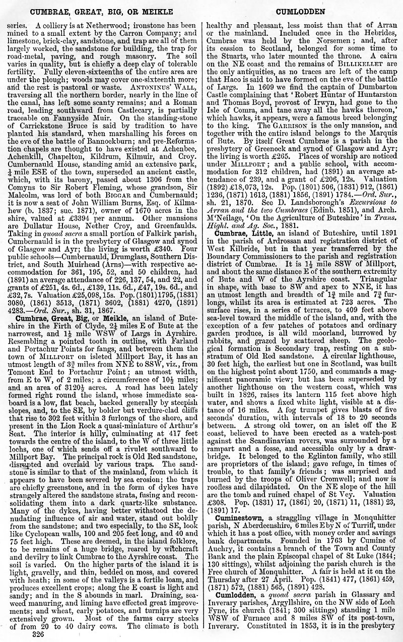Cumbrae - Great Big or Meikle, Little Cumbrae, Cuminestown, Cumlodden